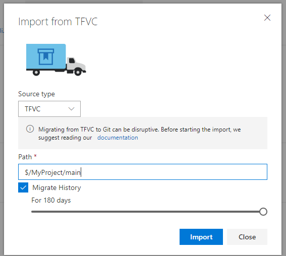 You can retain as much as 180 days of history, which is more than enough IMHO. If you need more, you can keep the old system around and look it out there. Why? Because of how TFVC and Git differ – it would not really make sense, and you are just adding stuff to a repository that should be as nimble as possible. Also, you are limited to 1GB per imported branch.