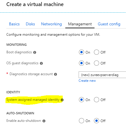 Also, when you create the Application Tier VM(s) you need to assign a System assigned Managed Identity to it - this is how the VM will authenticate with your database, and this is what will enable the Azure option in the deployment screen you saw before.