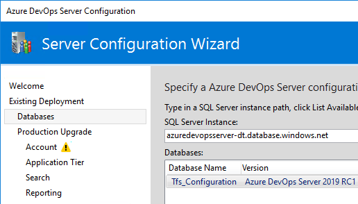 This is it really - then you can launch your Azure DevOps Server Configuration Wizard and proceed to an upgrade. Yes, even if you already installed Azure DevOps Server! Of course there are changes to perform here, so it makes sense to call it as such:
