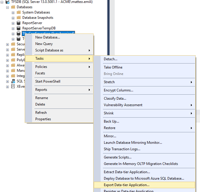 Once the database are imported (S3 tier or above!) you need to run this query on the Azure DevOps databases: